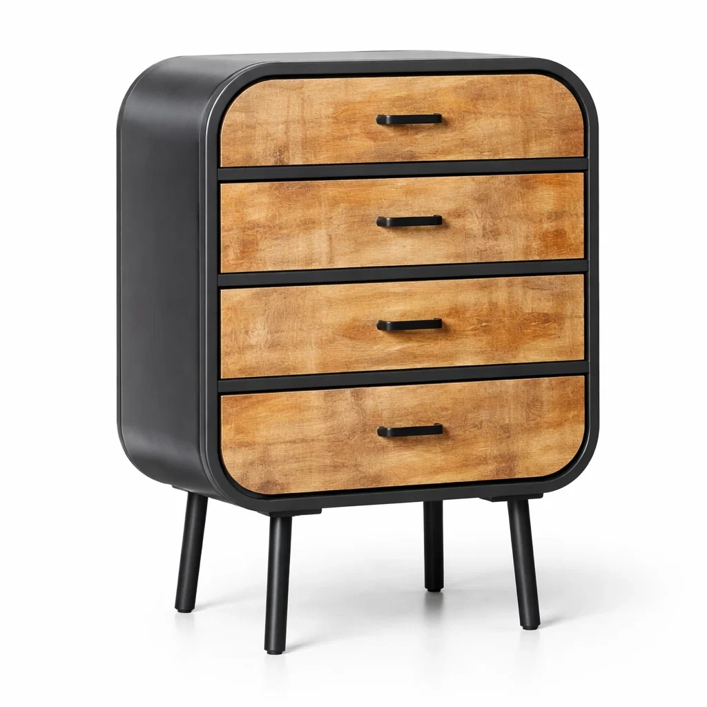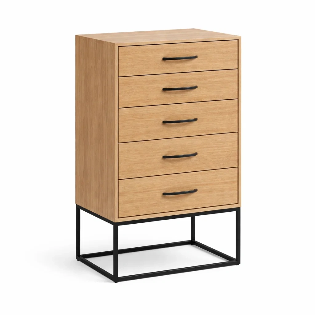 Cassettiera in legno con cassetti e base in metallo