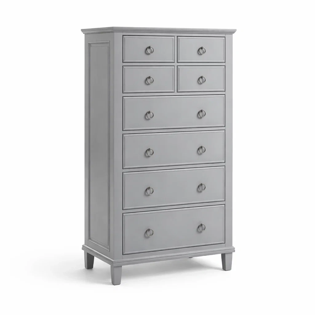 Cassettiera alta in legno grigia con cassetti