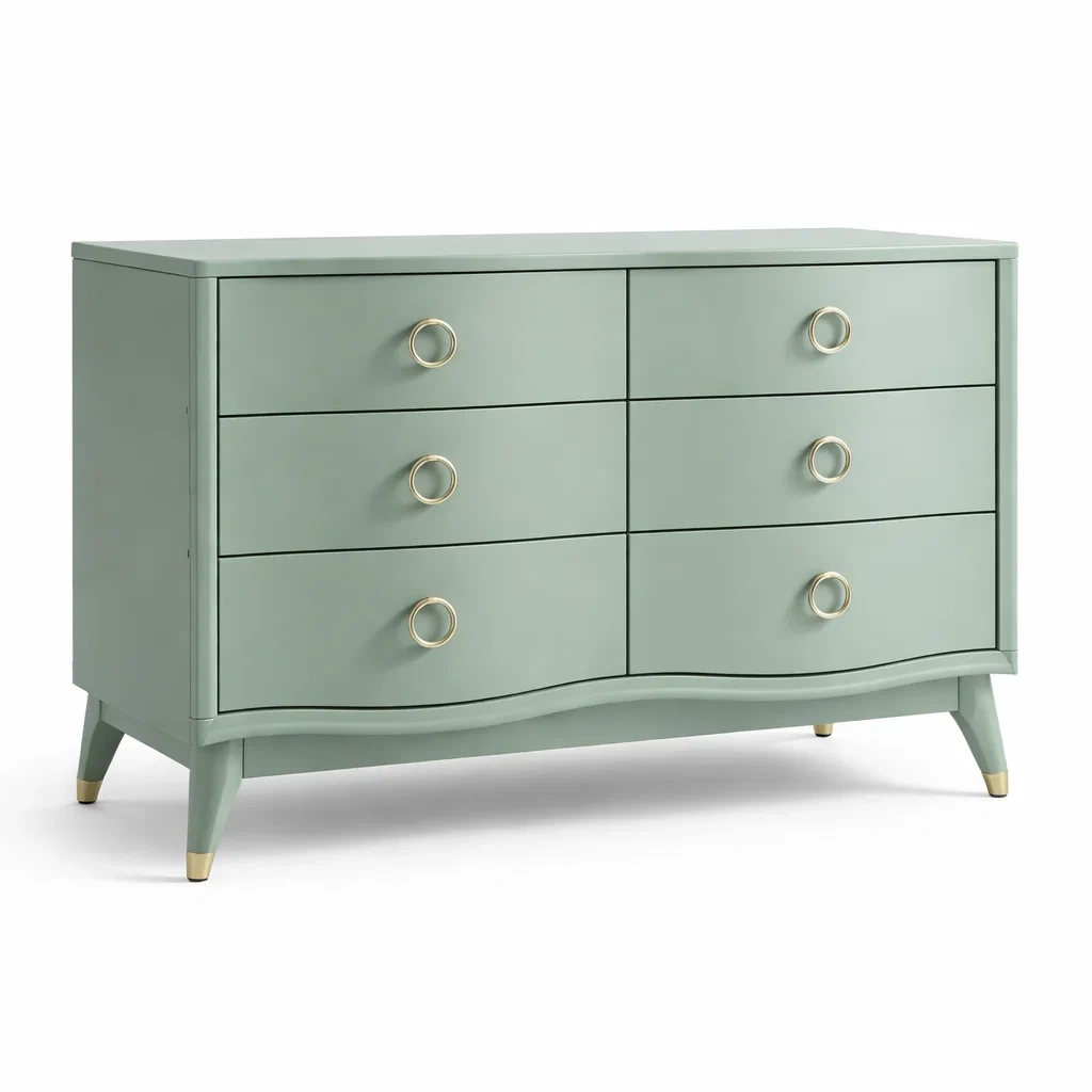 Cassettiera in legno verde con maniglie in metallo
