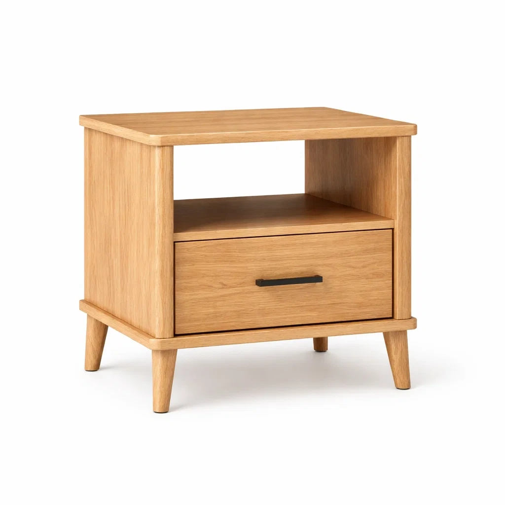 Comodino in legno con cassetto e ripiano