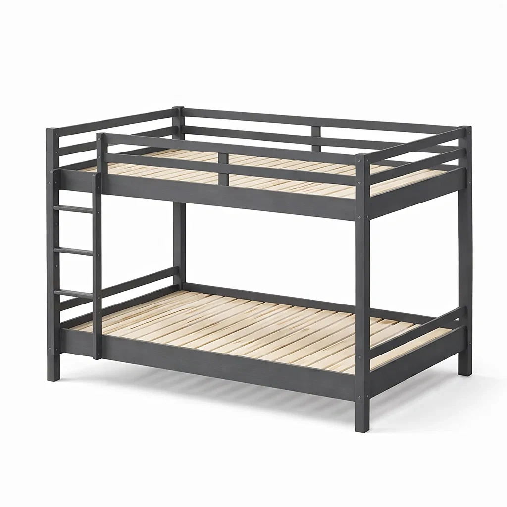 Letto a castello in metallo e legno di pino grigio