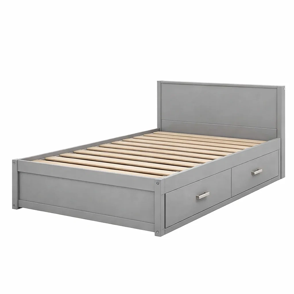 Letto contenitore in legno con cassetti grigio